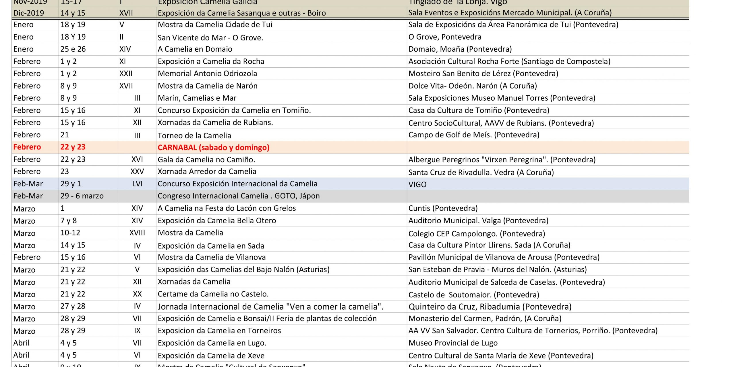 This year the calendar starts on November 15 in Vigo. A great event on camellia that will take place in the Tinglado de la Lonja de Vigo and that aspires to become the great event of the year.