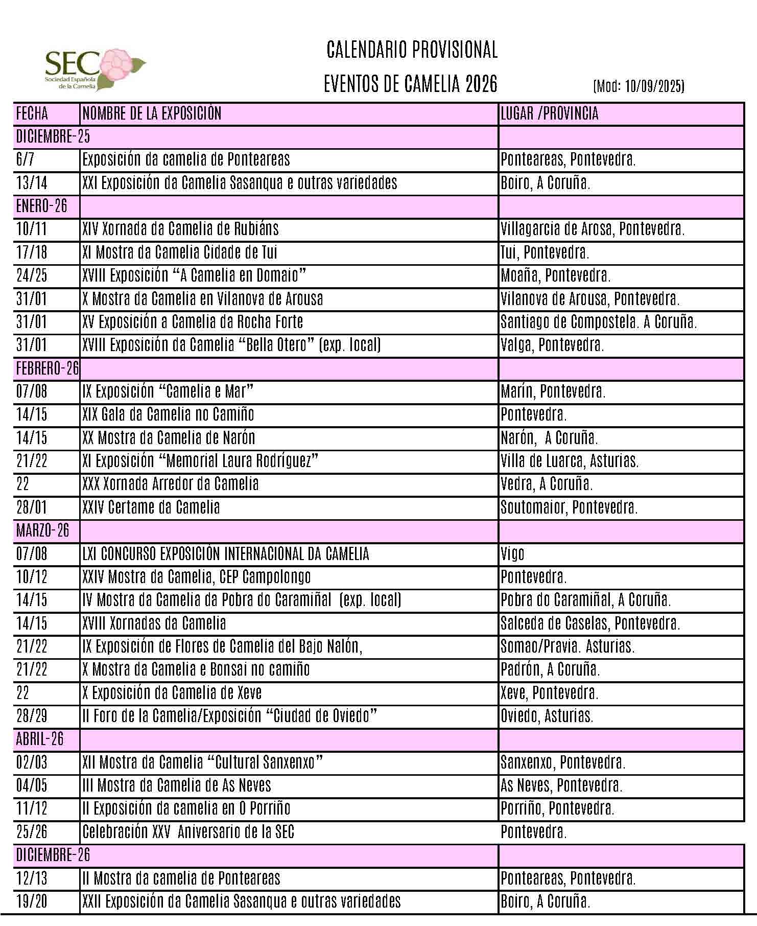 Calendario de Ferias, Eventos y Concursos de la camelia – año 2026