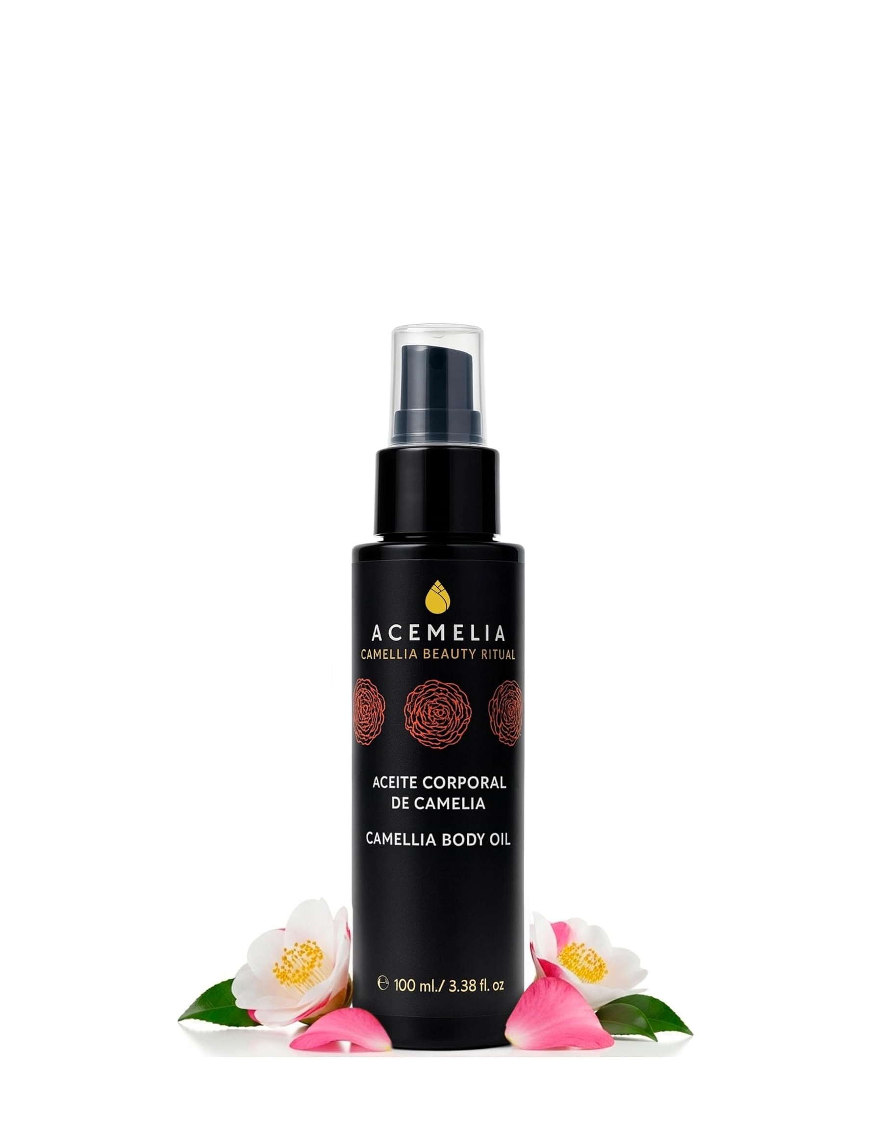 El nuevo Body Oil de Acemelia es una invitación a cuidar la piel desde el placer y la sensorialidad. Su fórmula 100% natural combina el poder del aceite de camelia BIO, nuestro ingrediente insignia, con una cuidada selección de aceites vegetales y esenciales que nutren, suavizan y envuelven la piel con una delicada fragancia natural.